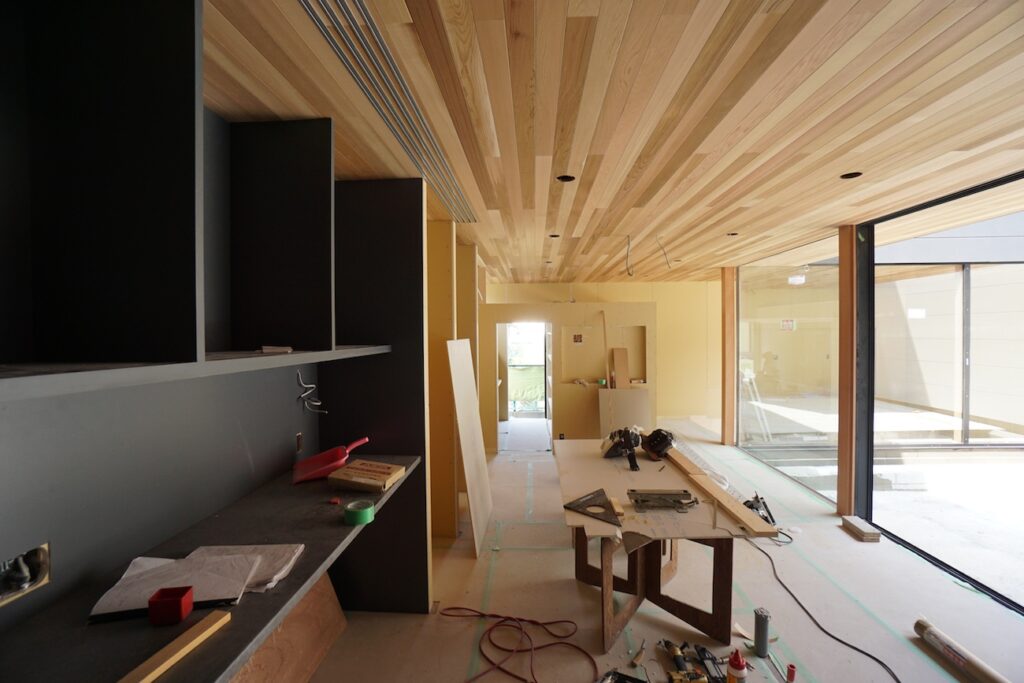 ガレージコートハウス 内部造作工事進行中 2016年8月18日 最終更新日時 : 2025年11月10日 sagashi ガレージコートハウスは内部造作工事進行中です。 おおきな窓と、板張りの天井が特徴のLDKです。 中庭で囲まれているので、カーテンを閉める必要がありません。 完成まであと1月半、引き続き設計監理させていただきます。