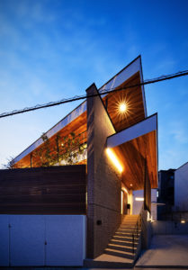 るいは屋上の室外機を隠す壁などの役割を持った構造体で、いびつな敷地形状に従いながら