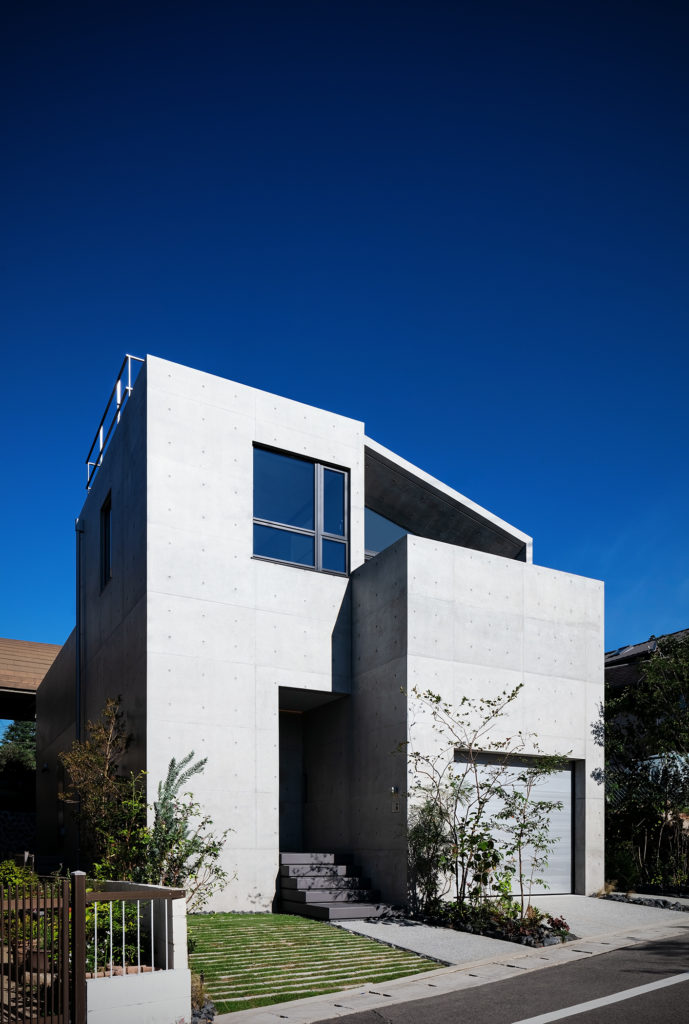 光と影をまとった、コンクリートの家。 シンプルだけれど、どこかぬくもりを感じられる佇まいにしたくて。 素材の素直さを活かしながら、 外構や植栽でやわらかさをそっと添えました。 時間とともに変わっていく光の表情が、 この家の魅力を少しずつ引き出してくれます。 都市の中にある、ちいさな静けさ。 帰ってくるたび、ほっとできるような場所になればと願っています。