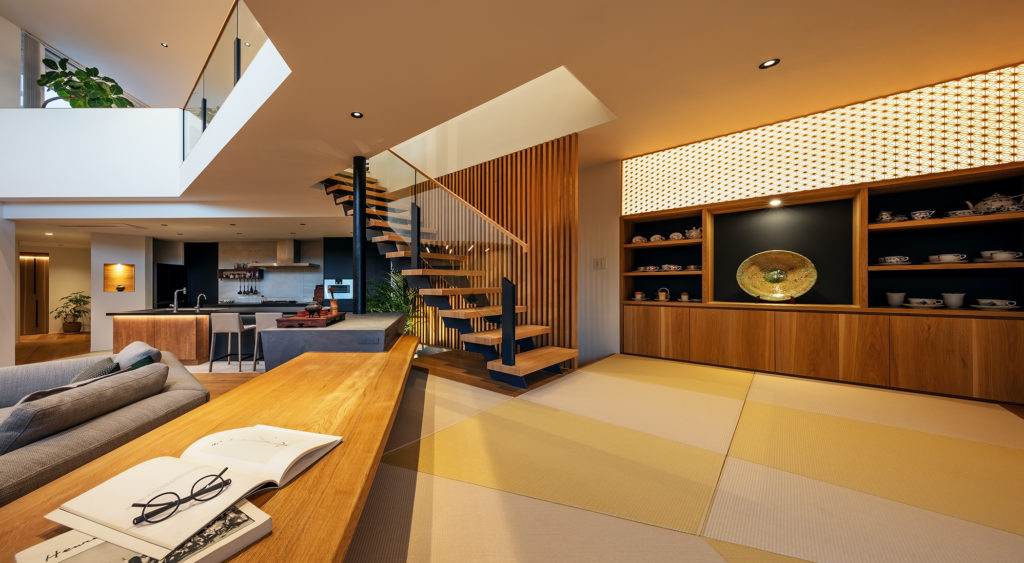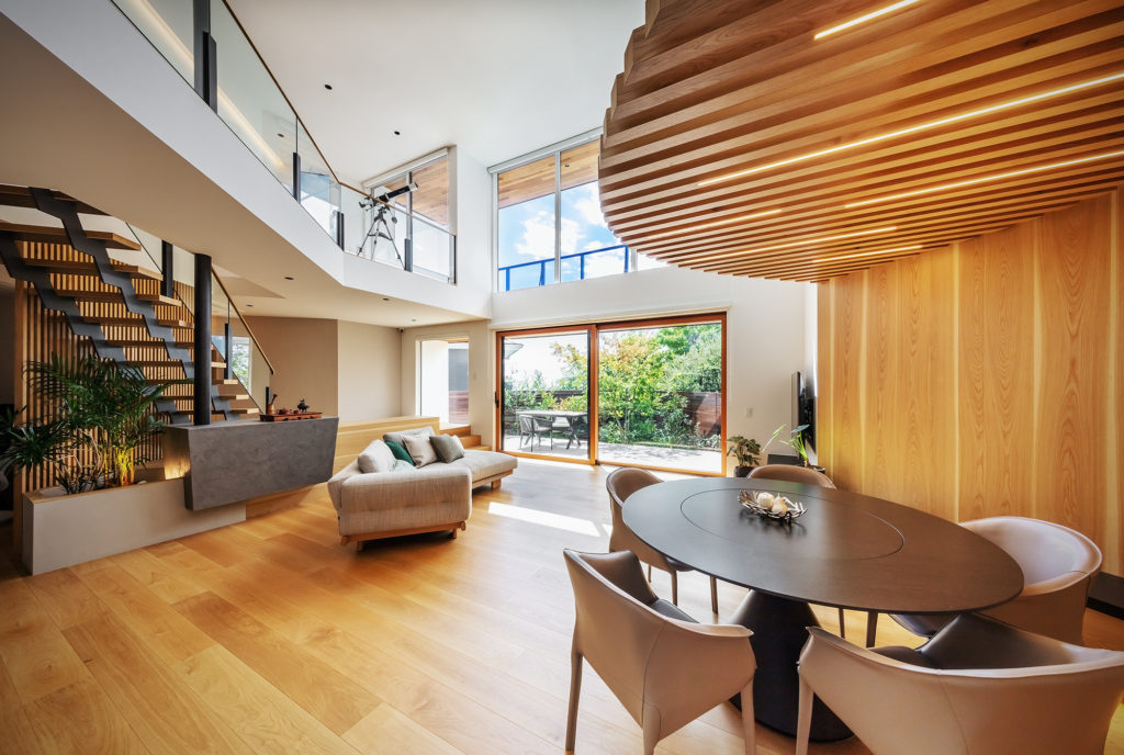 1階と2階が交差し/捻れ/絡まって、まるで糸が縒り合うようなかたちの家となりました。名